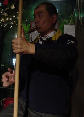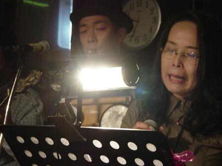 今回の「ジャグ・バンド特集」、カズー4本のホーン・セクション(!?)+歌姫1号でビッグバンド・ジャズをイメージして遊ばせてもらいました。「営業向き」とお褒め(!?)の言葉を頂戴しちゃったんですが、そんなつもりじゃぁ・・・。でも、「その手もあるか・・・」とまんざらでもなかったりして。あっ、歌姫1号ってのはね、元千葉フェス・スタッフの賄いおばさんで阿部美恵子といいます(こいつ我々の後輩のはずなのに齋藤のこと呼び捨てにすんですよ!)。ちなみに歌姫2号は夏のビアガーデンセットで歌ってくれたジェリーの成瀬さんね。今回の写真も成瀬さんに撮って頂きました。 ところで・・・ いいですか、言っときますが、コミックバンドなんかじゃないんですよ。営業用バンド、いや違う。基!私たち大真面目でやってんだから!・・・ってそうでもないか! |