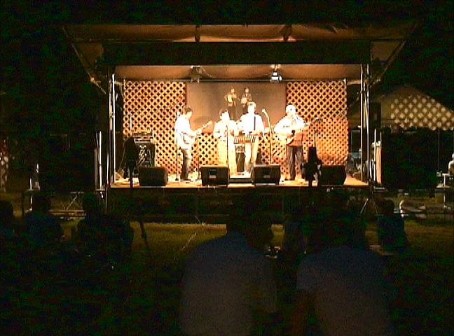 千葉フェスの土曜といえばいつもは明るいうちのステージだったんですが今回は暗くなってからのステージですよ。ちょい戸惑いましたね。「あっ、客席が見えない・・・」って。ベースは例によって平野が土曜は参加できないもんですから急遽三浦さんにお願いしました。でもさすがブルーグラス界のベテラン!急ごしらえでも安定したリズムで演奏できました。便乗して、2曲歌ったら声が出なくなっちゃた齋藤(夏風邪?)に代わってテナーもお願いしっちゃったりして・・・。