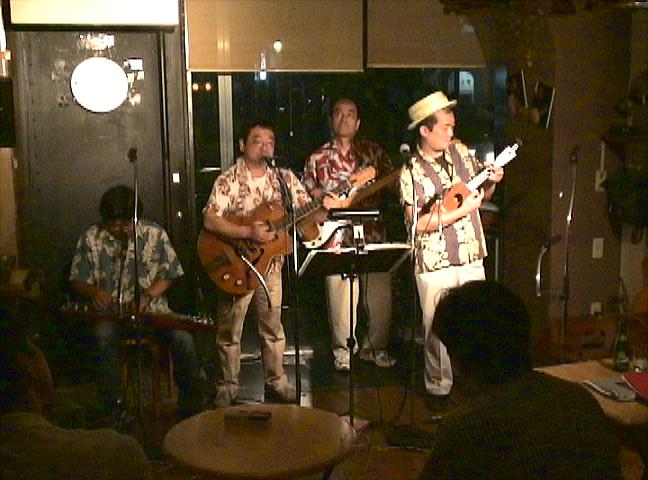 ハワイアンはゆっくりゆったり。そんなこと分かっていてもブルーグラスの速度が当たり前でしたからね。いつもつんのめっちゃいそうでしたよ。でも年に一度とはいえ6年目を数え、ようやくこの速度を楽しめるようになった気がします。当バンドが誇るリズムの要、平野のベースががっちりキープし岸のギターが脇を固めれば山ちゃんさいとーコンビが少々暴れたって微動だにしません。おかげでとても楽しめました。ますますハワイアンが好きになったかも。え?そんなのハワイアンじゃねぇや?まぁまぁそんな硬いこといわず、生大3つに唐揚げですね。