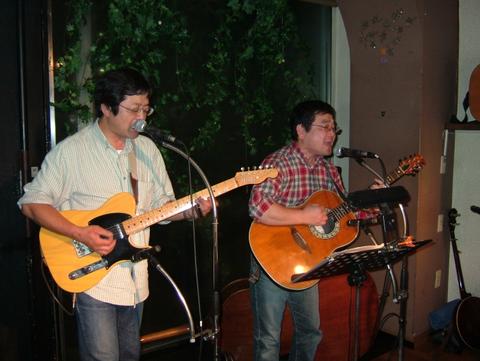 二人になってもう半年近くになるんですね・・・。で、相変わらず二人のままなんですが、皆さんに手伝って頂いてるおかげで活動のペースは変わりません。我々も早いとこ新メンバーを!と思わないわけでもないのですが、30年も続けてきてチョッと中休み(中だるみ?)といったところでしょうか。機械化(?)もアウトソーシング(!)も段々慣れて軌道に乗りつつあるというのも手伝って、今しばらくはこの二人でのんびりやってゆこうって思ってるんです。 明日はゴーストのOB会。そう、本家の法事です(笑)。岸は毎年同じ日が「てんけん君祭り」とやらで、しかも実行委員長!だから毎年抜け出しぃの歌いぃのとんぼ返りしぃので大忙し!「法事」とはいえ申し訳なく思ってます。当然この日のお献立は明日のOB会の予行演習も兼ねて。イーグルスも28年ぶりにアルバムをリリースしたとかですからそろそろ新ネタ作らないとね。 しかし・・・4人いた頃は写真にも変化があって良かったんですが二人だと・・・ホント変化が無いですね。前の使ってもバレ無いかな? *来月は岸の新妻がデビューしますよ! |