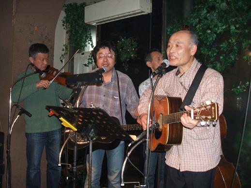 こちらは大川師匠とのジャム。私一番弟子です。なんつったってあぁ〜た、せークレット中心なんですが全然知らない曲のオンパレード!参加するみんなも「修行」と位置づけています。 この方、ガンとの壮絶な戦いの後復帰されたんですが、そのせいでしょうか。いつも何ともいえない穏やかな笑みを湛えています。命をかけた闘いを勝ち抜いた者にだけ与えられる「柔らかさ」なんでしょうね。ステージでも飄々とした佇まいでみんなを和ませてくれてます。そう、大川師匠はこんとん館第2土曜日の「いやし系」なんです。