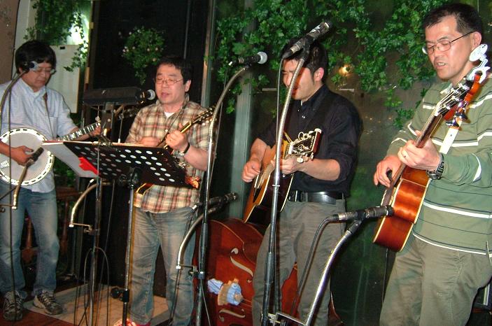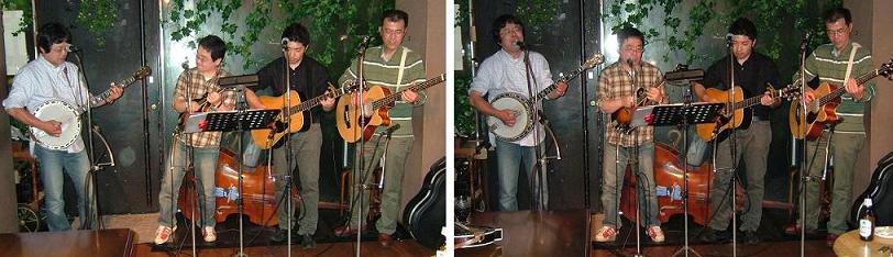 | 2人になって以来、ステージでブルーグラスやる時って大抵その場にいた人に手伝ってもらってスタンダードを・・・。なんだか殆どやっつけ仕事です。もちろんそれでも楽しいんですが、でもなんとなくすっきりしないんですよね。ならどうであったら我々らしいのか?どんな風にやったら、何をやったら本当に楽しめるのか?そんな疑問にぶつかって出た答えは・・・やっぱり"Revival"!我々にとってのブルーグラスってこれでしょう!だからどうであれ、それこそたとえ2人だけだとしても"Revival"やろう!って結論に達しました。とは言っても今までのような訳にも行かないんで少しずつ増やすってことで今回のお献立になりました。 |