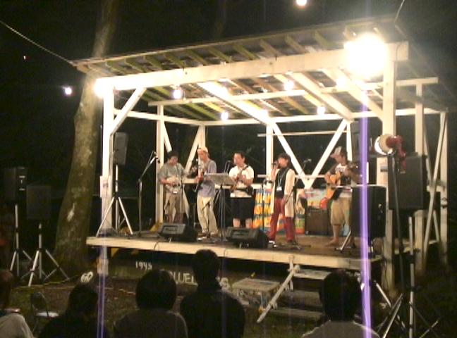 | 今回はちょいとバタバタと・・・。実は・・・やっちまいました。エントリー忘れ!もう随分と皆勤賞続けてましたがこんなの初めてです。直前で気が付いて、急遽バニーの中西さんに電話して「金曜なら・・・」となんとか入れてもらえましたが。もしダメだったらどうする気だったんでしょ?平野も休み取れて久々の箱根!と張り切ってましたからね。まぁやれやれでした。これで後はいつもどおり・・・とはいかなかった!当日もう一波乱が待っていました。仕事終えてから来るので、と出番は遅めの23時頃にお願いしましたが、箱根は案外遠かった!岸夫妻はまぁまぁの入りながら平野が来ません!ギリギリまで待ちましたが「もはやこれまで・・・」とステージへ。そしていよいよ我々の番になってステージ上がりかけたその時、諦めていた平野登場!もうこなると練習もヘッタクレもありません。とにかくやるっきゃないです。勢いステージのドタバタ感は否めませんでしたが、まぁとにかくやりましたよ。平野も無事箱根フェスにカムバックしたしね。それと、まぁこれはラッキーな話ですが、金曜の夜なんて閑古鳥と思いきや意外にもけっこうお客さんいました。聞いてくれたかはどうかどうかはともかく(笑)。で、着いて早々ステージ終わっちゃったからあとはのんびり。土曜の夜には帰る平野はいきなりフルスロットル!なんでも明け方5時頃までやってて、しかも6時に起きて散歩に行ったとか。それじゃ寝てねぇじゃん!ま、それだけ久々の箱根が嬉しかったんでしょね。私も嬉しいです。お道楽する者にとって仲間の笑顔は何よりのご褒美です。 |