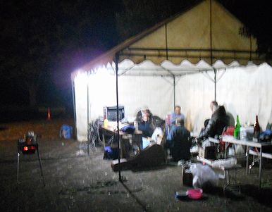 | ブルーグラスのフェスよりずっと後発のジョイカンですが、もう12回目ですか・・・。さいとーはPAスタッフでもあるんですが、休みが取れず、今回は前夜からの参加でした。既に一通り準備も終わって、現地入りしたときには既に宴会が始まってました。 |