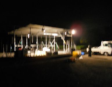 ブルーグラスのフェスと違って、終了は日没後。なので撤収もこんな感じ。でも手馴れたスタッフがアッと言う間に片付けちゃいます。帰りにラーメン屋でお疲れさん!やってお開きでした。