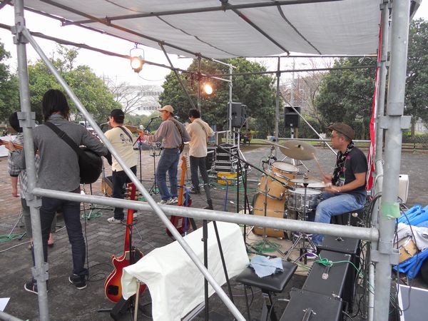 | ただし、そのビッグプロジェクトで予定してた「人間のドラマー」は実現しました。ずいぶん前、まだクラブハウスがあった頃以来ですからホント久しぶりです。で、やっぱいいですねぇ!リズムのこと一切考えなくてノンストレスでプレイできましたから。もちろんドラマーのウデによるところ大です。それもそのはず、彼はさいとーの「しのぎ」の同僚で、クールスのトラをもこなすプロ即戦力レベルですから!実はさすがのさいとーも以前からチョイ引っかかってたんです。野外の大きなステージでキカイもねぇかな?って。平野も岸も同じ気持ちだったようでにゴキゲンでした。次回もゼヒお願いしたいもんです。 |