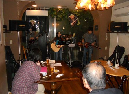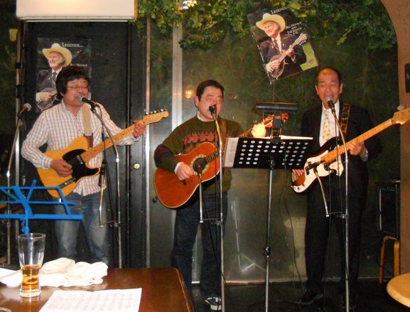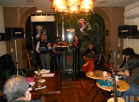 | 正月早々顔面神経マヒを患った岸が帰ってきました!と言っても完治したわけではなく、まだマヒが残ったままの復帰です。見た目にはいつもと変わらないんですが、本人のみが知る煩わしさを抱えて・・・。なのでできるだけ負担の少ないメニューを、と選んだのはやはりこれでした。ウチの一番古いネタですもんね。我々も少しでもお気楽に、と気を使ったつもりですが・・・けっこうしんどかったんじゃないのかな?奥様にも「行くな!」と叱られたんでは?それでもステージに立ってくれた彼を我々は誇りに思います! |