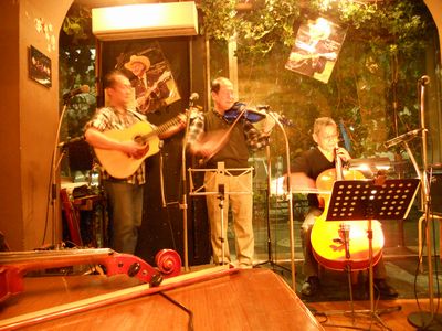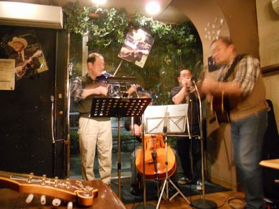 今回も引き続き復活プログラム。調べてみたら「特集」の形で4人でやるのはなんと9年ぶり!とはいえ2人になっても3人になってもやってはいたんでブランク感はそれほど。でも山ちゃんが加わってもサクっと練習出来ちゃったのには全員がびっくり。若くないんだから復元にはけっこう手間取るかと思ったんですけどね。ホント意外でした。なので当日もけっこう楽しくできました。さいとーを除いて・・・。だってね、ピックだのバーだの一式丸ごと忘れて来てやんの!ピックはともかくバーはねぇ。で、窮余の策はコンビニに走って・・・「強強打破」のビン!ラベルひっぺがしてバーの代用ですわ。もう引き難いったらありゃしない!(笑) まぁ、それを除けばまた楽しいお献立が戻ってきた1日ではありました。