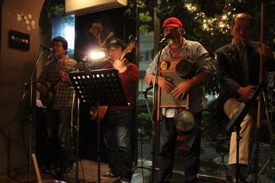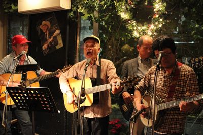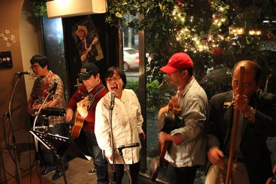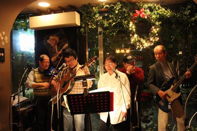 まずはいつものジャグバンドから。これさ、きっちり練習しないのがミソ。サイズだけ決めたら「・・・んな感じ」でOK!1年間の厳しい(?)練習から開放されて好き勝手に吹いて弾いて歌って。だからとってもお気楽!いつもの皆さんも輪をかけてお気楽に熱唱!
