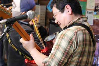 ずっと前から飲んじゃぁ「やりたいね」なんて言っときながら、ちっとも実現しなかったクラブハウスのミニフェス。ついに実現しました!いえね、去年の夏にやったんですよ、一応。箱根フェス撤退後の代替え策として同日程でクラブハウスで。ところが単なる飲み会になってしまい、私なんざとうとう楽器のケースも開けなかったという体たらく。さすがにブーイングも。で、大反省!今度こそちゃんとミニフェスにする!と誓ったんです。そこで千葉フェス前の閑散期を狙い、切り口としては「カントリーのミニフェス」の感じで仕掛けました。結果、三隅さんと天才ばーぼんずの竹井さんと星野さんも加わっていただけてなかなかの盛会。昨夏のリベンジ果たせました。![]() まずは言い出しっぺのゴーストから仕込み済みのC.C.R.ネタで。ここでは初めてやったんじゃないかな?程良く燃料回って良い感じで遊べました。 |