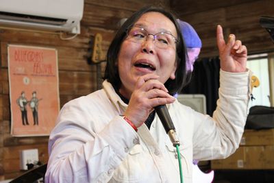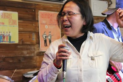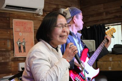 お次は賄いおばさん、じゃなくて阿部美恵子嬢。おつまみ作ってふるまったし燃料も適量か? えらくゴキゲンさんで歌っとりました。今年からゴーストが完全サポートでやっつけ仕事なし!とくりゃあなおさらでしょう。