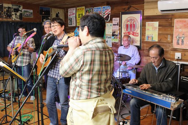 さぁ、いよいよ本日のメインイベント!梅さんのカントリー歌手デビューステージ!当初カラオケの予定でしたが、これだけのメンツが揃ってそんなこと許すワケが無い!照れずに歌い遂げた梅さんに拍手!