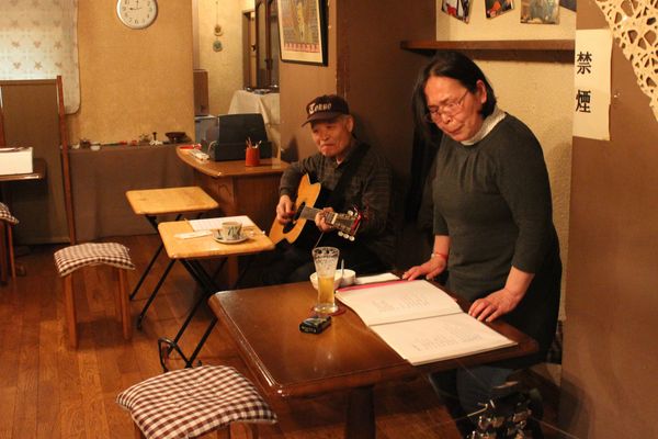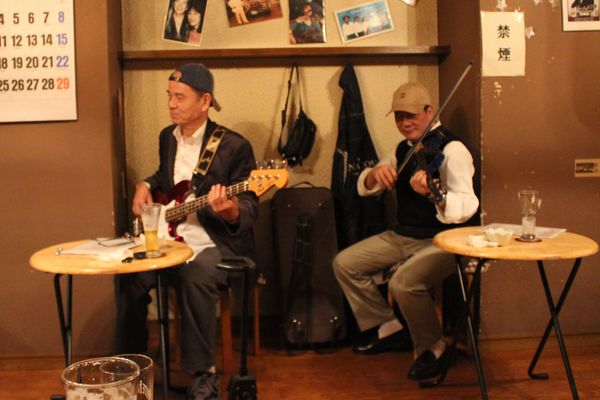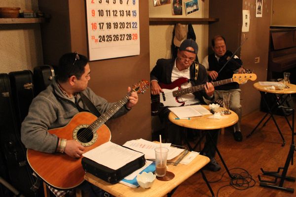 ![]() 今回は三隅さんがお休みだし、ゴーストは今年手抜き、じゃなくてバックに専念なもんだから歌い手は阿部と大川師匠の2人だけ。ならば存分に歌っていただきやしょう!・・・っていうわけでもなく、単に少ないのでこうしました。手抜き?いえ、ゆる〜い集まりですからこれでいいんです。 ![]() でもさすが大川師匠。手を抜きません(だから手抜きじゃないってば!)。いつもより時間もよゆうですからマシマシでたっぷりと。これぞジャパニーズ・セイクレド!癒されます。それに対して阿部はママさんと・・・ ![]() いやもちろん歌いましたよ。千葉フェスの曲も決めなきゃだしね。しかし・・・なんか・・・会議で発表してるみたい?でも、これ実は歌ってるとこです。マイク使わなかったのは、この広さならマイク無用の声量ですから。 ![]() 最近平野は電車?ビールっすねぇ。あ、西さんも程良く燃料回ってきて・・・アレ?眠そう(笑)。でもこのジャムのおかげで、西さんも千葉フェスで阿部バンドに参加してくださることになりました。 ![]() それにしてもこのゆるさ、いいわぁ〜。でもばんちゃん早く帰ってこい! ![]() |