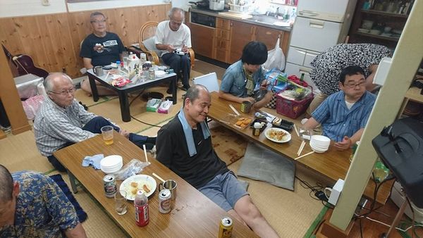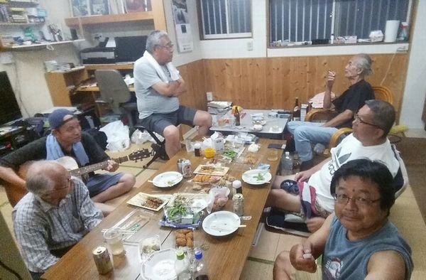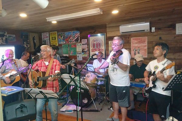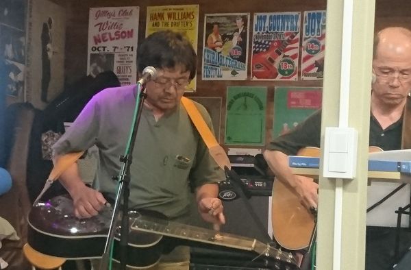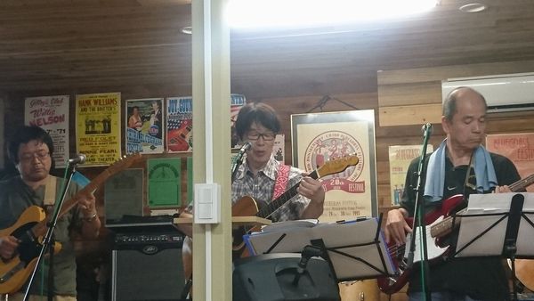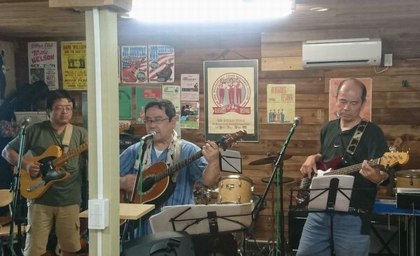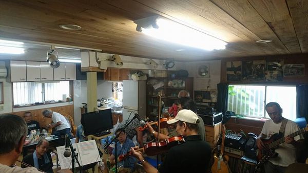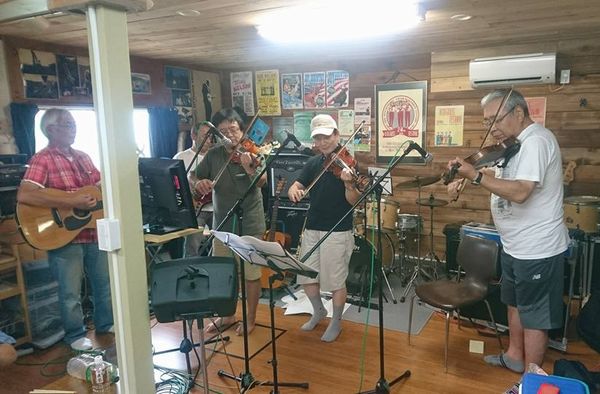 昨年のサマーキャンプは単なる宴会に終わり、楽器もろくに弾かないという体たらく。それを大反省して仕掛けた春のミニフェスが、まずまずのお座敷ライブにできたので、そのノリで、いやより充実させて仕掛けたのが今回の「サマーキャンプ」です。ありがたいことに、参加バンドもぐっと増えてなかなかの盛況ぶりでした。ステージも、飽きぬよう&年寄りが疲れぬように1バンド2ステージ制にしてフル回転!昼頃から夕方までゆるゆるながらベタでライブを楽しめました。おかげで2台のクーラーフル回転でも熱気ムンムン!暑〜いサマーキャンプになりました。![]() 日程は今回も箱根フェスと同じ8月最終金土日。なので25日(金)には早くも呑兵衛さんたちが集結。スーパーのお惣菜を肴に盛り上がってました。でも高齢化してるから寝るのも早かったです。ええ、その分朝も早いですが(笑)。 ![]() 26日(土)はお昼頃開始。確かこのトリプルフィドルのセッションから始まったような・・・。よく覚えてません!だぁって、酔っぱらった年寄りバンドの交通整理と暑さでいっぱいいっぱい!写真撮るのも忘れちゃいましたよ。 ![]() でも幸い「天才ばーぼんず」の竹井さんが、F/BにUPしてくれてたのでそれを拝借しました。なので竹井さん・・・写ってません。春に続いて参加してくださったというのに。ドラムも叩きゃスティールも弾いたし歌もうたったのに!竹井さんごめんなさい!・・・つぅか、誰か撮ってねぇの? ![]() そうそう、写っていないと言えば賄いおばさんの阿部も。おもちはばっちり、田淵さんもかろうじて写ってるのにね。三隅さんにカメラ頼んどきゃきゃ良かった!あの人にカメラ頼むとね、ありとあらゆる角度から整理に困るくらいたくさん撮ってくれるんですよね。ありがたい存在なんです。それを忘れるなんて、ホントいっぱいいっぱいだったんでしょね。 ![]() 和が"Ghost Riders"の1回目はEAGLESの安パイ&定番メニューから。 ![]() ジョイカンに向け練習してる「神門ドランカーズ」。練習の成果やいかに?それは同時に監督の指導やいかに?でもあるんですよね。なんか・・・子供の発表会見てる気分(笑)。ええ、ここまで来ましたよ! ![]() 賄いおばさんのおかげで、ライフライン(?)はもちろん次々出てくる肴にまったりゆったりリラックス。ありがたいことです。誰も逆らえません。あっ、阿部もかろうじて写ってるじゃんか!益々もって・・・竹井さんごめんなさい! ![]() こちらは「トッパーズ」の面々。回を追うごと確実に腕上げてます。ここではてっぺいくんも歌ってます。千葉オープリーでも歌わしちゃおか! ![]() お、これは"Ghost Riders"の2ステっすね。最近ハマってるしっとり系ブルーグラスでコーラス楽しんでます。平野、良い艶してますねぇ(笑)。 ![]() こちらはカメラマン(?)の三隅さんのバンド。ゴーストがバックでジョイカンネタを試運転。阿部も同じくゴーストのバックで試運転したんですが、竹井さんがスティールで参加してるんで、全く写るチャンスがありませんでした。 ![]() 「神門ドランカーズ」の2ステ。駒井さんってホントいつも楽しそうに歌いますよねぇ。絶対見習うべき大事な姿ですよ!しかめっ面がシブイなんてとんでもない勘違いです。え?余裕がない?んじゃしゃーねぇか!(笑) ![]() これぞ今回のメインイベント!梅さんが"Somewhere Between"をドラム叩きながら歌います!誰かにそそのかされたとか、押し付けられたとか、脅された(絶対にありない!)んじゃないんです。去年から「歌いたい」ってコツコツ準備してきたんです!それに合わせてヘッドセットマイクも用意して!みんなも全力でサポートしてます。いやぁ、いい味出してました。 夕方ステージが終わると、居残りメンバーで宴がまた始まったんですが、私・・・ダウンしました。気ぃ張ってましたかね?安心したんでしょうかね?あとで気が付いたんですが、熱中症だったかも?暑かったもんなぁ・・・。ま、無事お開きになって、かつての箱根同様27日(日)午前中には皆さん帰れたようでホッとしてます。 参加してくださったみなさん、ありがとうございました!またやっどぉ〜! |