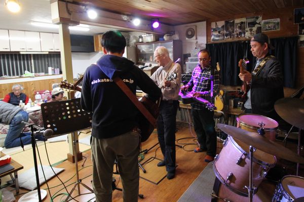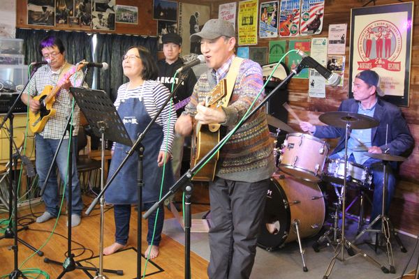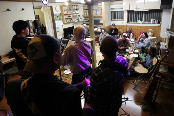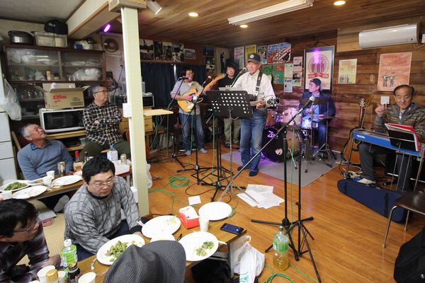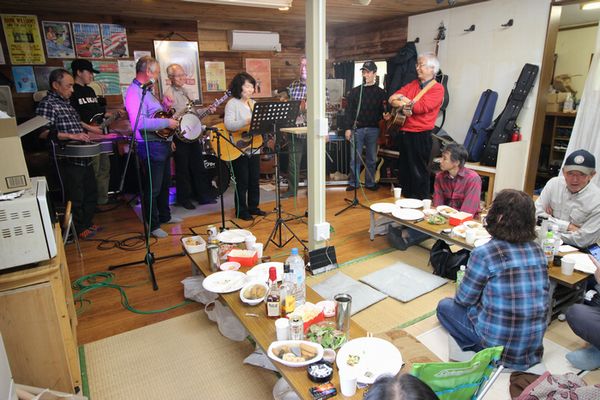 昨年に続きグループ・フロンティア クラブハウスでミニフェスです。今回から「春のお座敷フェス」と題し、千葉オープリーの皆さんもお誘いして盛大に!時間も大幅に伸ばし12〜20時の長丁場!でもこれだけ出たがり屋さんが揃ったら休憩なんて無用。いや、そんなもん取れません!ぶっ通しで歌って弾いて飲んで食って。若いころの箱根もかくや、という賑わいでした。