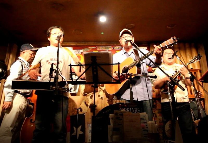 | "Lonesome Grass Boys" の小濱さんから久々にお声がかかって、ロッキートップに出演できました。ええ、もちろん今回も「客」です。その客がいつものように1ステージいただいちゃおうって寸法です。 |