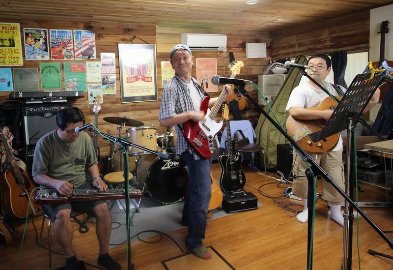 お献立は、先日のTOPPERS同様の「イロモノ」。久々のネタでしたが、3人でもなんとかなる、という手ごたえを得られたのは収穫でしたね。まぁ、ハワイアンでさいとーが歌いながらスティール、ってぇのにはまだ修業が必要かも、でしたが。そうそう、今や伸び盛りのてっぺいくんが、ドラム叩いてくれましたよ。今後をちょっと・・・考えちゃおかしら(笑)。