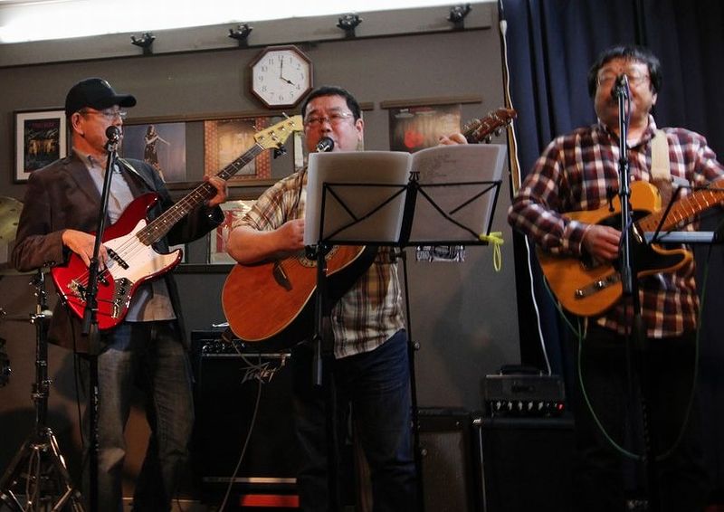 | 今回は、初めての場所で初めてのイベント参加でした。元々は小濱さんのバンド"Lonesome Cowboys"で参加することになっていたんですが、肝心の小濱さんが昨年11月に急逝され解散。私がP.スティール弾いてたご縁で、その代役を買って出たというわけです。いつかは出たいと思っていたライブハウスでしたが、こんな形で実現するとは・・・。 |