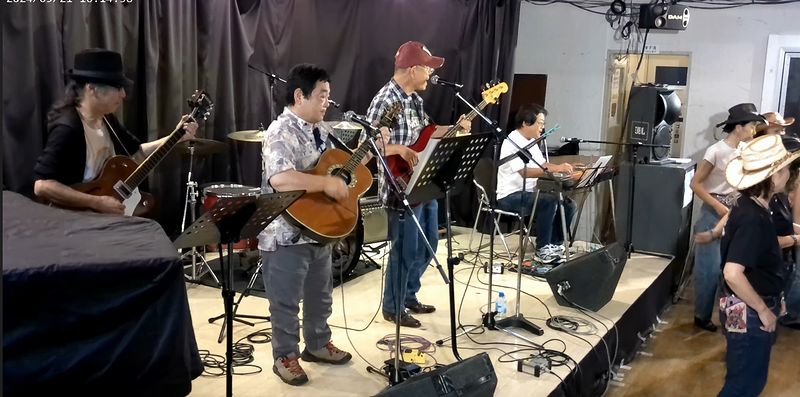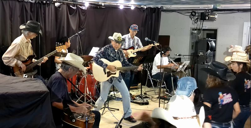 | ひょんなことから、私が主催者エディー稲田さんのバンドにP.Steelで参加することになって以来、以前より登場頻度がチョイ上がったフラワーホールジャンクション。今回はシンガーソングライターでもあるギタリスト伴ちゃんを助っ人に迎え、我々もP.Steelを使ったお献立、は"Desert Rose Band"。2016年のJOY COUNTRYでやって以来の編成&お献立です。一度やってるので、まぁ忘れてるとこもあったりはしたものの、まずまずの記憶力(笑)。うまいこといきました。伴ちゃんのおかげで今後もこのお献立組めます。 |