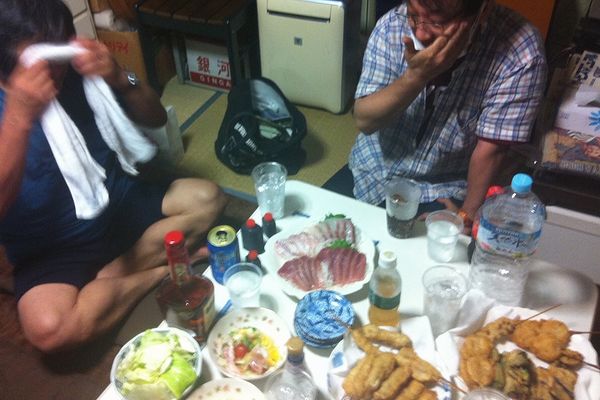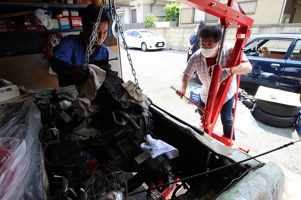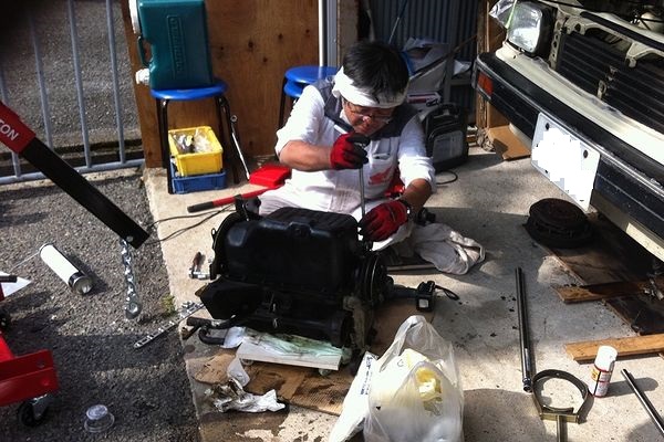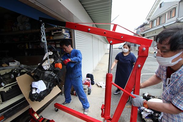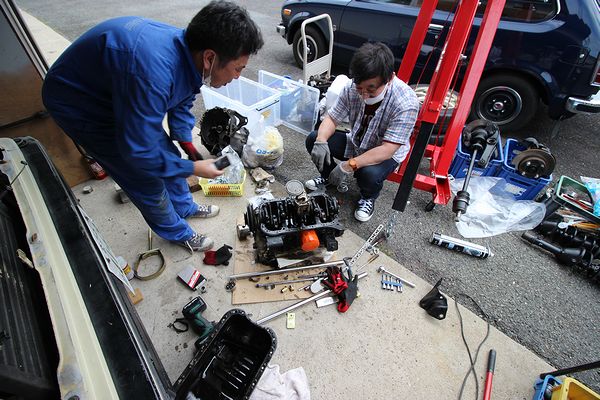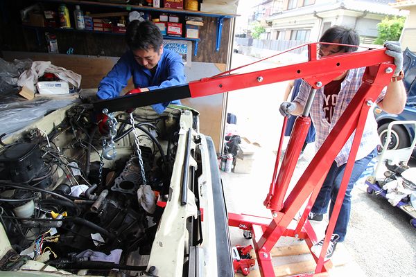 6月30日(水) エンジン降ろすぜい! 作業開始!の前に いよいよカントリーのエンジン降ろし開始です。が、降ろす作業は中村くんが来て3人揃ってからなので、まずはその準備から。と言っても補機類は粗方外してあるので、周辺の整理くらいなもの。すぐにやること無くなっちゃって、せっせとエンジンルームの清掃してました。 ![]() お昼頃中村くんが到着しましたが、なんだか昼めし食う気配がありません。食わないの?と聞いたら二人とも「どうぞ」と。なので私だけ近くのうどん屋一八へ。蕎麦派の私ですが郷に入っては、ときつねうどんです。 ![]() 店できつねうどんは初めてかも。おあげが甘いんすね。ま、これはこれで。 いよいよ降ろすぜい! ハイお待たせ!んではいよいよ降ろしますか!わずかな経験と文殊の知恵(?)だけが頼りです。と言っても楽しんじゃってますけどね。 ![]() ![]() ![]() ![]() ![]() ![]() ![]() 無事降ろせましたが、予想通りだったりそうでもなかったり・・・。でも何をしていけばよいかは見渡せたようです。 ![]() それよりクランクプーリー外すのに四苦八苦。インパクトなんて無いですもんね。いろいろ試しましたが、こちらは武ちゃんが後日自力で、として作業終了。撤収中ににわか雨くらいましたが、シャワー浴びて打ち上げです! ![]() お~、どて焼きと串揚げまで!ありがたい!ごちそうさまでした! ![]() 明日はまた寄り道しつつの東海道です。 |
