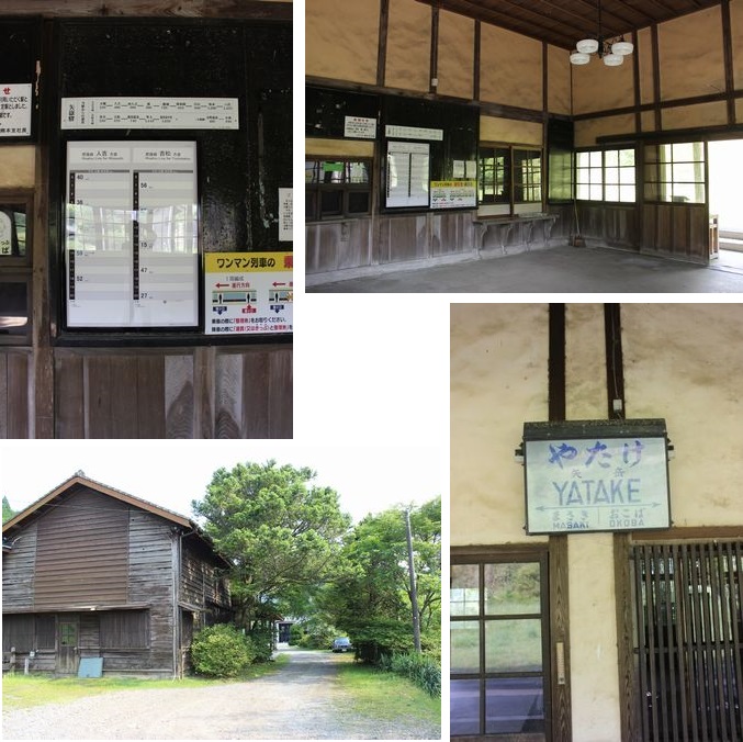 | 売店あって干しシイタケ売ってます。でもとうとうスタッフに会えなかったので、料金箱に払って2袋ほど。たっぷり入ってこれで1袋500円はお得! 矢岳駅 ![]() 当時ものと思われる矢岳駅は趣がありますねぇ。元々は鹿児島本線の駅ですから駅舎も立派。でも今は1日上下5本ずつが停まるだけの無人駅。どこの家にも車がある周辺住民の人数考えたらそれでも多いくらいか・・・。 |