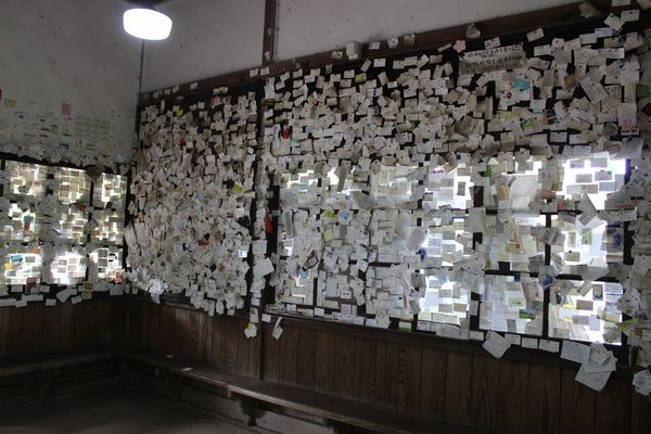 貨物ホームが残っています。今よりもずっと多くの人が住んでいて、鉄道も輸送の要だった時代の遺構、と言っては言い過ぎか・・・![]() さて、そろそろ戻りますか。と走り出したんですが、途中で「大畑駅」の表示に反応して、行ってみることにしました。 大畑駅 ![]() 程なく着いて車から降りてちょっと驚いたのは先客がいたこと。列車の来る時分でもないのに、こんな山の中の駅で人に会うとは。話してみたら地元の方で、列車を見に来たとか。列車をねぇ・・・。大畑駅は矢岳駅に比べてこじんまりしてます。ここも昔のままなんでしょうね。 ![]() それにしても何ですかこれ!?大畑って何か縁起が良いんですかね?これじゃせっかくのレトロな駅舎が台無し。まるで幸福駅です。 ![]() もういいや!さ、今度こそ帰りましょ! 場違い? 今宵のお宿は人吉の「アンジェリーク平安」。ここも着いてちょっとびっくり。だって、殆ど小じゃれた結婚式場です。くたびれたおっさんの泊るとこじゃありません。5号も場違い!ですがエレベーター1基もありません。だから階段に「健康のため・・・」と張り紙が(笑)。じゃ、いっか! ![]() ここも晩飯の仕込みには事欠きません。すぐ近くに大きなスーパーありますから。で、行った時間帯が良かった。お惣菜は半額のオンパレード!なのでついつい・・・。昨日の唐揚げも加わって・・・し~らないっと! ![]() |