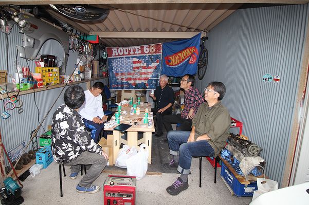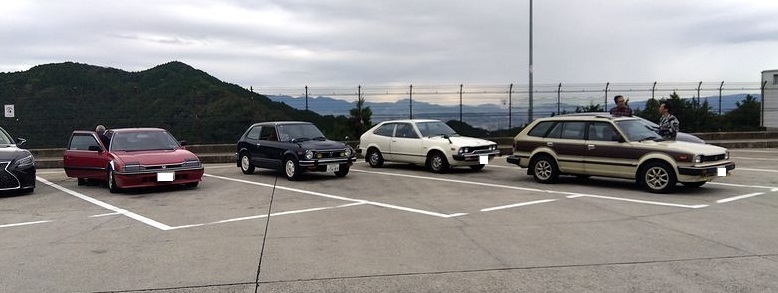 お、嬉しいですねぇ、3台の昭和がお出迎えです!![]() んではさっそく秘密基地に向かいましょう。編隊組んで出発! ![]() 順調に走って香芝の秘密基地到着。昭和のホンダ車香芝ミーティングの始まりです。やや遅れてもう1台の初代アコードも合流。 ![]() 真ん中のアコード、初代&2代目アコードのクラブに参加してくれてますが、お会いするのは今日が初めてです。 ![]() ノンアルで車話、に限らず話があっち行ったりこっち行ったり(笑) ![]() 今回は車を並べて撮れないので参加者並べて。 ![]() Nゲージも出てきて…まだまだ続くう(笑) ![]() 仕上げはいつもお世話になってる秘密基地の宿泊所(?)で宴! ![]() でも忙しい武ちゃんと早寝早起きの私では長持ちしません。22時に2人とも寝落ちしちゃいました。 |