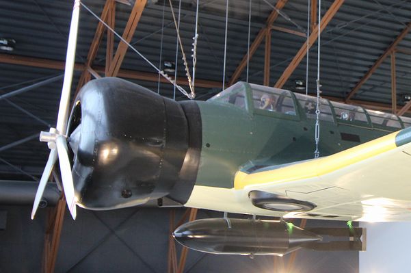 ![]() 偵察員が地上を見るための窓も、爆弾がチョイ右寄りに懸架されてるのも忠実に再現されてますし、機内には操縦員、偵察員、電信員も! ![]() 九一式酸素魚雷もあります。当時物のカットモデルのようです。 ![]() 紫電改は月イチで外に出して展示してるそうです。パイロットが乗り込み、整備員がエナーシャー回して出動の場面を再現してるようです。それも見たかったなぁ・・・、じゃ、また来るか! |