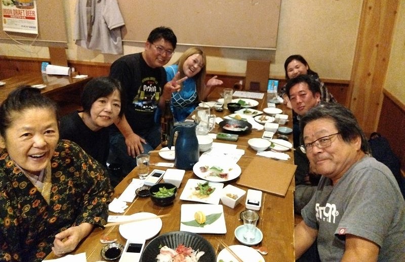 | そしてこの1枚。これをしに来た、いや、帰ってきた?それが溢れてる1枚でしょ?ずっと市川住まいで姉なんていないのに、まるで里帰りしてねぇちゃんに甘えてるみたい。実は初参加の武ちゃんたちとねぇさんの息子夫妻が意気投合。年寄りははみ出しちゃいました(笑)。おかげでねぇさんとゆっくり話せましたけどね。今回も楽しい熊本の宴でした。 |