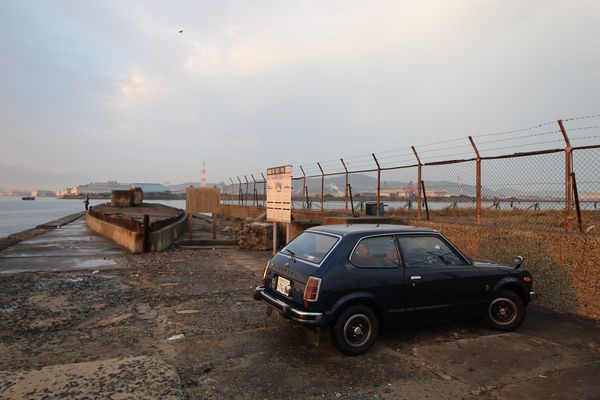 西方行脚2018/Country Gold 10月17日 奥様孝行・T 夜討ち朝駆け! 爆音放送にイラついて何時に寝たのか?の翌朝。今度はご丁寧に4時20分に、5分早着の放送でたたき起こしてくれました。ったく・・・。なので5時過ぎには、まだ真っ暗の小倉の町にほっぽり出されちゃいました。 ![]() と言っても、北九州地区にはず〜っと行ってみたかったとこがありましてね。ちょっと辺ぴなとこでなかなか行けなかった「軍艦堤防」です。戦後防波堤の資材として駆逐艦を沈めたとか。ですが、10月の九州ですから日の出が遅い。暗いうちにそんなとこ行っても何だかわかりゃしない。そこでチョイと遠回りして、まずは桃園公園のD51244から。 ![]() これぞ正に夜討ち朝駆け!ようやく明けかかった程度の暁の公園でしたが、撮りまくっちゃいました。正にデジカメの威力! ![]() では若戸大橋渡って本命拝みにまいりましょう。この橋、確か私が小学生の頃の開通で、当時日本一のつり橋だったとかなんとか。でも今じゃもっとでかいのワンサカあるし、瀬戸大橋渡った後なので、ふ〜ん、って(笑)。 ![]() 橋を渡る頃にはもうすっかり明るくなってて、作戦成功! 軍艦堤防 ![]() そしてついに拝めました!旧帝国海軍駆逐艦「柳」の「軍艦堤防」です。意外にもすぐそばまで行けて、こんなツーショットまで。 ![]() この手前には、今は見ること叶いませんが、戦艦大和の沖縄特攻直衛艦「冬月」、「涼月」も埋まっているとか。感無量です。なんてF/Bに上げたら、友達のお父上が、その「冬月」に乗り組んでおられたと!後日訪問してお話し伺えることになったので楽しみです。 |