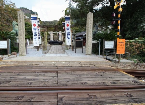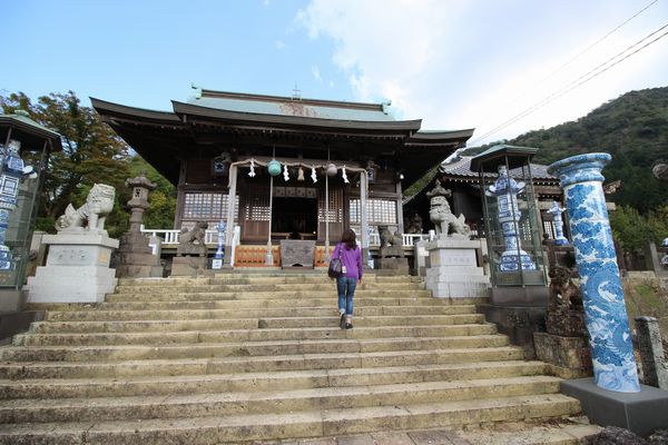 | 西方行脚2018/Country Gold 10月18日 奥様孝行・U 久々の唐津を巡る ![]() 奥様孝行2日目は高速飛ばして、ってほど飛ばせやしませんが、45年ぶりの唐津から。と言っても、当時線路沿いしか来てない私には、駅にも寄らない今回は初めての町同然です。予定には特になかったんですが、「唐津城」が見えたので、とりあえず行ってみることにしました。 ![]() それより「虹の松原」をどうしよか?とは思ってたんです。そしたらお城に登る途中で既にこの眺め。お城はもっと上ですから、ってことは・・・ ![]() と、登ってみるとドンピシャ。これは行ったも同然!?まぁ、天橋立もそうでしたが、浜歩いてもよく分かんないっすからね。それにしても、自撮りは相変わらず妙な緊張を強いられるな(笑)。 ![]() あの弧を描いてる長い浜辺が「虹の松原」だそうです。 ![]() はい、「唐津城」&「虹の松原」二丁上がり!お次は宝くじにご利益があるという「宝当神社」。唐津湾の高島にあるので高速の定期船で渡ります。あ、我々は宝くじ買わないんで、あくまで奥様の御朱印が目的です。 ![]() この後グンと加速し、船首を突き上げ斜めになって驀進します。 ![]() ここは靴を脱いで畳の上でお参りします。随分あちこちお供してお参りさせていただいてますが、これって珍しいのでは? ![]() ところでこの高島。宝くじがらみのこの神社くらいしかないので、ほぼ全員がお参り済ませると、折り返しの船で帰ってしまいます。 ![]() 海のもの食わせるとこがあっても、誰も入りそうにありません。 ![]() ほら、船も良いタイミングで来ちゃうし。観光客がお金落とすのは神社とこの船だけ?それでもこの小さな島のプラスになってるなら幸いです。 ![]() お次は「唐津神社」へ。 ![]() 千年以上の歴史ある神社なんですが、なんか・・・、ちょっと・・・、麻痺してきてますかね?不謹慎ながら特に何も感じなくなってきてます。 ![]() お次はチョイと走って日本最西端の駅を目指します。 ![]() 日本最西端、の駅へ これは数少ない(?)私のワガママで、東西南北の端っこの駅へ行きたい!というテツの他愛無い欲望だったりします。途中に神社やお寺がありゃいんですが、それらしいのは皆無。隠れキリシタンが多かったであろう土地柄なので、教会ならたくさんありそうですけどね。ま、ここはとにかく付き合ってもらいました。そして・・・じゃん!「たびら平戸口駅」です。 ![]() これで残るは最南端。次の九州行きで予定しています。 ![]() 興味無さそうだった奥様も。んじゃ私もツーショットを。 ![]() さて、この近くでお昼にしましょう。もちろん海のものと決めています。 ![]() なら刺身、なんですが、いかたこ天丼に首根っこ掴まれて(笑)。良い盛りでしょ!もちろんノンアルビールと刺身も追加して。奥様は海鮮丼でした。 ![]() あの橋渡ると風光明媚な平戸島なんですが、時間が足らないので。 陶山(すえやま)神社 ![]() 有田焼陶祖の神を祀るというこの神社。ホントに陶器いっぱいで、鳥居まで陶器で造られてるそうです。これもかなり珍しいかと。。 ![]() 麻痺してる私にも、なんか、良い感じ! ![]() ここ駐車場の入り口が分からなくってねぇ。いえね、行く前に駐車場のチェックしとくんですが、ネット情報いくら探しても出てこないんですよ。 ![]() 航空写真には駐車場写ってるんですが、ストリートビューで見ても入路がさっぱり。ネットで散々探してやっと見つけて、現地で見事駐車場へは入れた時はさぞやドヤ顔だったかと(笑)。あ、写真はインチキ合成です。 ![]() ちなみにここへは、まず札ノ辻交差点を佐世保線の線路方向に入って突き当りを右。すぐに左へ線路くぐるガードがあるので左折。これで線路の向こうへ行けます。くぐったら左行けば駐車場です。参考までに。 武雄神社 お次は日本最大級のパワースポット「武雄神社」です。って、後で知ったんですけどね。その割には空いてたかな? ![]() そのパワーの源が「武雄の大楠」と「夫婦杉」というご神木だそうです。 |