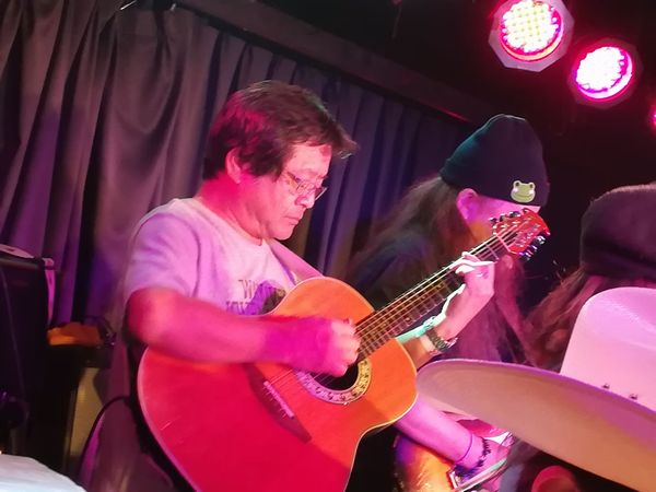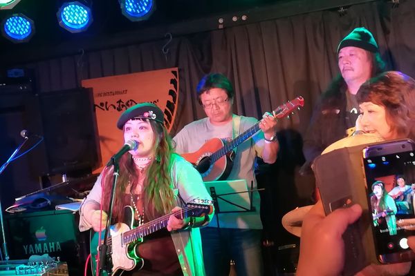 もう一丁お約束の写真撮ったら休暇も終わりです。「しごと」(?)に戻りましょう。さ、今夜のライブに備えて一路熊本へ!![]() 「口約束の日/FOOLS GOLD」 その今夜のライブというのが「口約束の日/FOOLS GOLD」という、明日の「カントリーゴールド」の前夜祭で、ホテルからは5分チョイの「ぺいあのプラス」ってとこでやるそうです。リハがあるそうなので、チェックインしたらギター持って直ちに出動です。でも知ってる人も少なく、勝手も分からない小屋なので小さくなってました。やがてリハも済み準備も粗方終わって、腹ごしらえに行くというのでついて行ったら・・・ ![]() なんとまた桂花ラーメン。熊本まで来て2日続きで同じ店とは(苦笑)。 喧噪の中の孤独 とはちと大袈裟か?でも店に戻ると既にお客さんがワンサカ!どこにも居場所がありません。隅っこの隙間で立ってるしかありません。食い物も・・・無理だろなぁ、と早々諦めて。知ってる人も少ないし、話をするにも音がデカくて会話にならないし・・・。とにかく「経験」です。 ![]() やがて出番がきて・・・ ![]() ぶっちゃけ、いなくても良いようなサイドギター役を後ろの方で。 ![]() これって、T先輩がせっかく熊本来たんだから、とお情けで参加させてくださった、ってとこかな?良い経験させていただきました。 ![]() ステージが済んでも状況変わらずで、とうとう最後までたちっぱなしでした。いやぁ〜、えらい盛り上がりでした。終了後は「トミーズ」というお店で打ち上げでしたが、朝の早い明日に備えて早めのお開きとなりました。 |