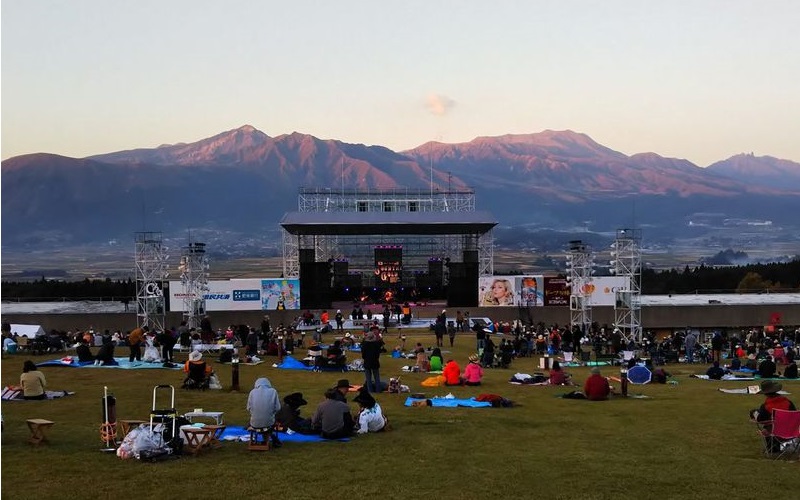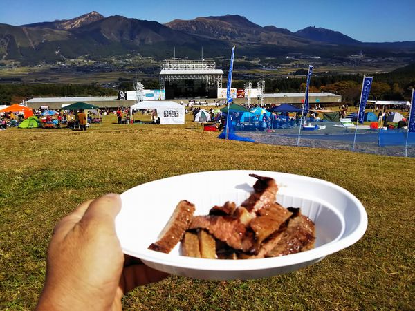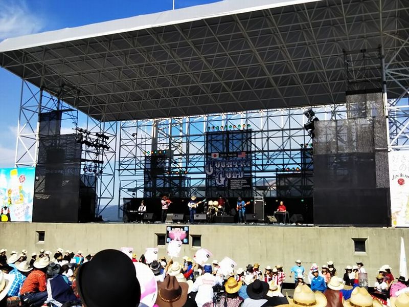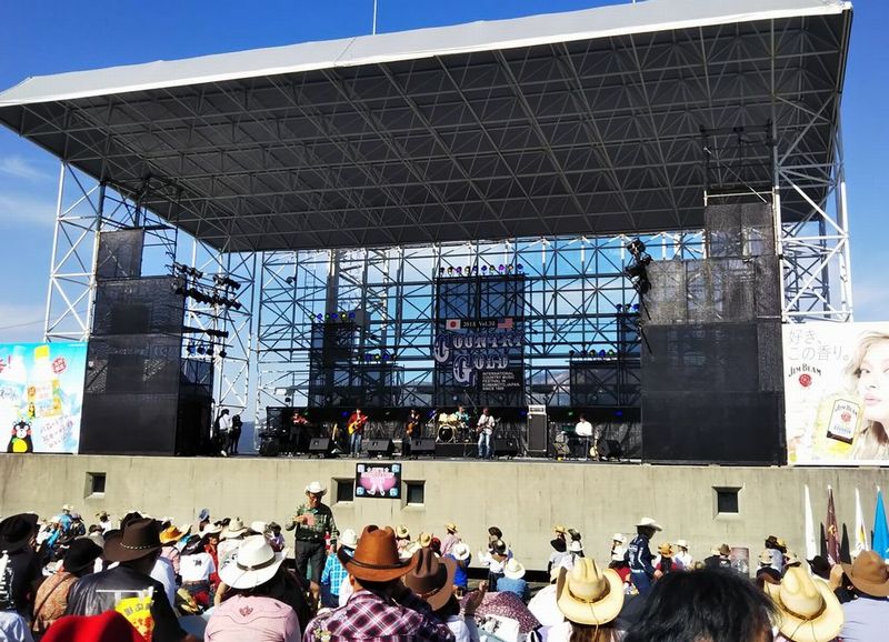 西方行脚2018/Country Gold 10月21日 Country Gold! ささやかな好奇心と義務感 さていよいよ今回の「大義名分」です。長いことそういう音楽やってるんだから、行くのは当然なのかもしれませんが、カントリー大好き?って聞かれるとうつむいて黙っちゃう(笑)。でも最後だそうですからね。 ![]() あ、Kさんの東京からのツアーに便乗してバス移動なので、今日は5号ホテルの駐車場でお休みです。ありゃ、車内では早々と燃料注入始めた人も。会場に着くとものすごい人と車!ですがこれでも最盛期に比べればずいぶん減ったとか。んじゃ最盛期頃って・・・いい時に来たのかもしれません。 いきなりステーキ! 着いたらまずは陣地の確保。それが済んだら・・・え?いきなりステーキっすか?って、あのチェーン店じゃないですよ。 ![]() では阿蘇の山々を愛でつつ、阿蘇の赤牛丸焼きをいただきましょう! ![]() ただでさえ旨いのにこのロケーション!もう、旨いったらありゃしない!燃料も注入開始!ありゃ、もうすでに出来上がってる方も(笑) ![]() ここの正式名称は「熊本県野外劇場アスペクタ」。あそ+スペクタクルの造語だそうです。しかしまぁ実に素晴眺め!よくぞこんな素敵な場所にステージ作ってくれたもんです!しかし、日差しが強くて暑い! ![]() あ、隣の女性は、ゆんべご一緒させていただいたバンドのベース弾き。3人のお子さんと参加してます。頭いじってるこの子は、ママ恋しさに演奏中にステージに上がってきちゃったりして(笑)。(F/B Mさんより拝借) ON STAGE! ステージがデカくて遠いからスマホじゃきついなぁ・・・ |