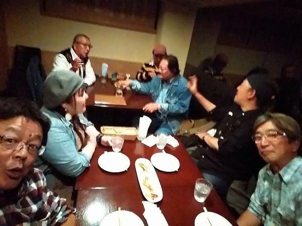 VINCENT”は、こちらもほぼ知らないブルーグラス・バンドですが、全員ワイヤレスのピックアップ付きで、ステージを縦横無尽に駆け回って・・・。これにはブルーグラス好きの皆さんも苦笑い。今時のブルーグラスってこうなんですかね? 撤収!&打ち上げ そのバンド聞いたら、クロージング待たずに撤退です。皆さん慣れてるんで帰路の混雑回避だそうです。しかし・・・なんか・・・本場アメリカからが半分で3組だけって・・・。私も知ってますが、昔はこんなんじゃなかったです。豪華絢爛の出演者に、さすがの私も行っちゃおかな、って思いましたもの。会場も、昔はもっとたくさん売店も出てたし乗馬コーナーもあったし、だそうですしね。30年も続けてると、かな?いや、とっくにブーム(昭和30年代)の去ったこのマイナーな音楽でよくぞ30年も続いた!ですよ。しかも支持層は団塊の世代ばっかりだから高齢化の一途。そう、絶滅危惧音楽!(苦笑)。この先は諸先輩方をお見送りし続けて、そして誰もいなくなった・・・ってか?ま、楽しめるうちに楽しむことにしましょう。 ![]() 撤収後はツアーの皆さんと打ち上げx2。ちなみに2軒目は夕べも来た店「トミーズ」でした。はるばる熊本まで来たのに、2軒も2日続けて行くなんて!(笑) ま、おいしかったので良しとしましょう。 |