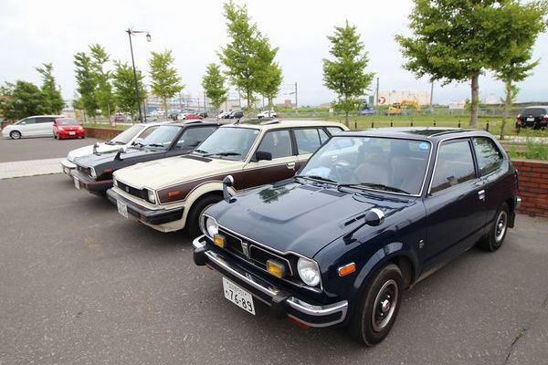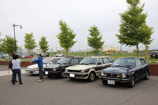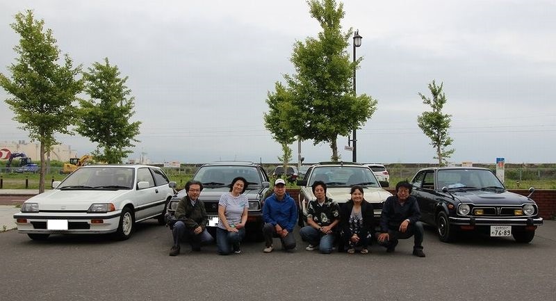 | はい、やっと並べられて写真も撮れて「昭和のホンダ車青森ミーティング」成立!ええ、例によって、どこだろうがこれができりゃ成立なのです(笑)。 |