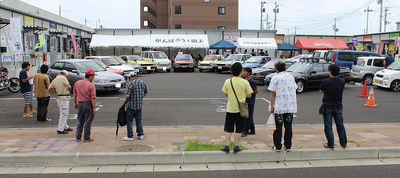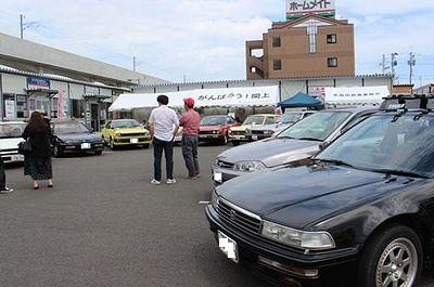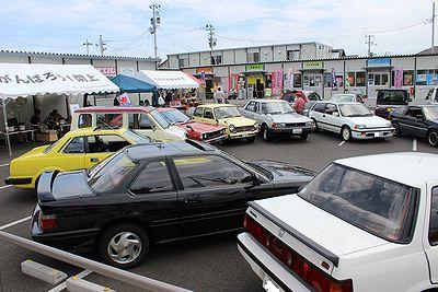 当初予定では、ここから被災地をマギーさんに案内してもらう、だったんですが、彼の希望で仮設商店街で昭和のホンダ車の展示というイベントにすることになったので。旧車ったって日産トヨタなら喜ばれるだろうけど、不人気なホンダですぜ。「それでもいいんです。何もイベントが無いんだから!」とのことで。でも10台以上集まったんで、小じんまりながらそれなりの展示はできそうです。まぁ、見向きもされないだろうけど(苦笑)