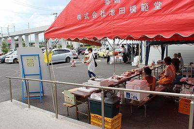 でもただ並べてたんじゃ意味がありません。少しでもここへ金落としていかなくちゃね。せっかく昼時に集まったんですから飯ぐらい食わなきゃ、と奮発した寿司は松竹梅の竹!写真はアスコットのマサマサさん提供ですが、食い始めてから撮ったんで大分減ってます。ええ、いい盛でしたよ。味もGOOD!鮮魚の入荷もすっかり戻ったみたいです。これに突き出しやら小鉢にお椀も付いてましたからかなりお得!良心的な商いも以前のままなんでしょうね。がんばれ閖上! |