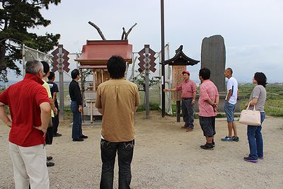続いて日和山富主姫神社、閖上と案内してもらったんですが、いつもなら「お〜!」の昭和なホンダ車の車列も、さすがに見るところが見るところなんで・・・。だからちょっと異様な光景です。海側で煙を上げてるのは復興した工場などではなく、瓦礫処分の施設だそうす。一時は瓦礫があの施設より高く積み上げられていたとか。悲しい煙ですよね・・・ |