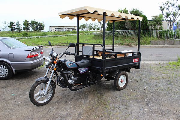 と、そこへ珍客が。中国製を改造したとかで、姿格好もユニークならメーカーも!"HOND"だって!(笑) マギーさんの仲間の肉屋さんが、皆さんへのお土産の牛タン持って来てくれたんですが、生だったんで・・・。あ”〜ここでたこ焼きやってたら焼いて食えたなぁ・・・。おしい! 仙台港へはマギー亭から殆ど一本道で30分ほど。牛タンに名残(違うだろ!)は尽きねど、さいとー北へ向かいます!