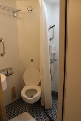 船室は窓の無いインサイドの2人部屋。窓が無い分一等ながらリーズナブルなんで。海見たけりゃデッキに出れば良いしね。広さはビジホのシングルより一回り狭い感じですが、必要にして十分。しかも部屋にトイレ&シャワーもあります。たいていの船のトイレは共同ですからこれは嬉しい。まぁ、高速のPAでさえウォシュレッとの時代にトイレだけはちょっと減点かな? さぁて、ゆんべは野宿だし。ゆっくり布団で寝るぞ! |