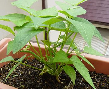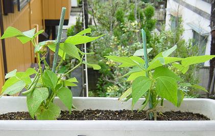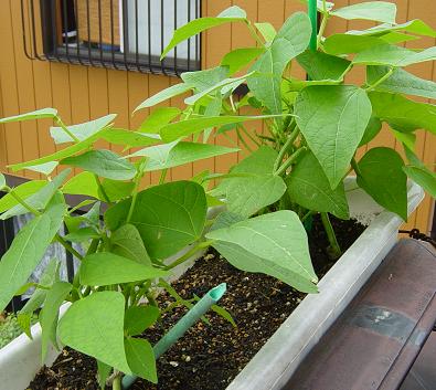 んでもってこれも蔓無インゲン。ただしこれだけ1本植えにして収穫量に差が出るかテストしてます。 |
