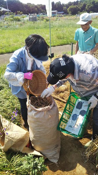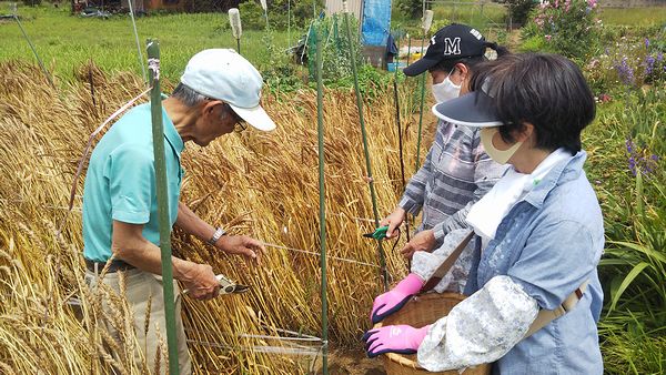 リモートも何度かやってると、たまにはお外でランチ!なんて気にもなるわけで、公園物色してて思い出しました。先生の畑!野良仕事きつくなってきたとかなんとか。んじゃそのお手伝いを大義名分にしちゃえ!って。先生も快諾してくださったのでお弁当持参で行ってきました。ただし人数は2~3人とのことだったので、次に繋げる先遣隊の感じで。![]() 今回はこのメンバー。リモート常連組2人と久々登場の永野さんです。永野さんは趣味で畑やってるの知ってたんで声かけました。 ![]() まずは先生から畑の紹介と作業の説明してもらいつつランチ。 ![]() 晴美さんは「持ってけ!」と言われたソラマメもいでます。 で、いよいよ実技指導。今回のお手伝いは小麦の刈り取り。脱穀機がないので穂の部分だけハサミで刈り取るんだそうです。作業そのものは難しくはないけど、何せ数が半端ない!ちっとも進みません! そのむしった穂をぶら下げた籠にためて、いっぱいになったら袋へ。 実作業は2時間ほどでしたが、素人的にはがっつり働いた気分(笑)。 でね、作業して思いました。機械のない大昔はこれが当たり前だったんだよなぁ・・・って。ん?先生毎年これやってるの?さっきいただいた奥様の焼いたパンも、仁戸名サロンでいただいたパンもこれやって?!次にいただくときには背筋を伸ばし噛みしめて食べなくては! |
