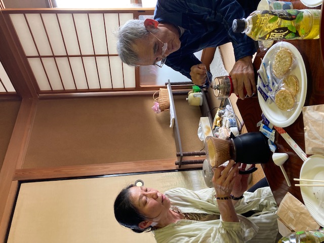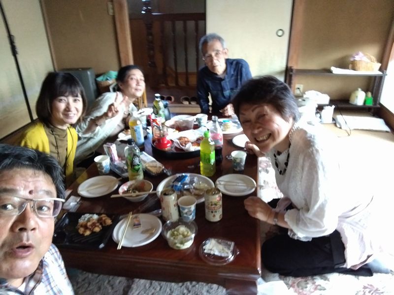 | 久々の仁戸名飲み会です。平日の昼間でないと・・・という岩月さんのリクエストに応えつつ先生の生存確認も兼ねて。ガキどもはちょくちょく集まってるけど、先生のご様子はあまり伝わってこなくてちょっと気を揉んでましたからね。そういや縄文ごっこで麦収穫のお手伝い以来ですわ。で、ランチ飲み。各自弁当持参でランチをご一緒する、の感じで。 |